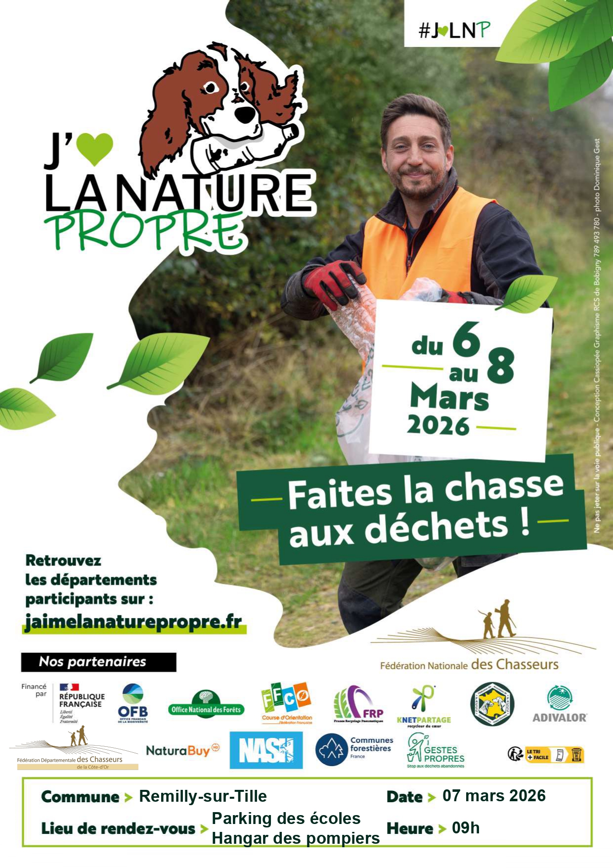 Samedi 07 mars 2026, RDV à 9h00 sur le parking de l’école. L’opération J’aime la nature propre est organisée par la société de Chasse en partenariat avec la Comité des Fêtes de Remilly-sur -Tille